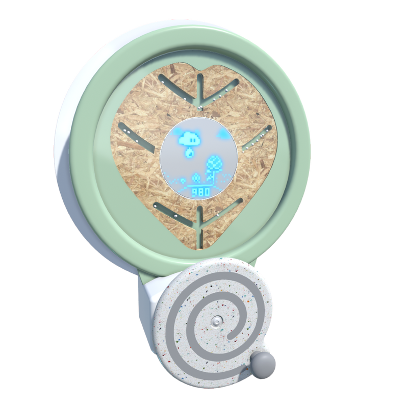 Chaque tour de manivelle alimente l’écran LED. Sur le Kylii Power Leaf (feuille), le mini-jeu Flower Power. démarre. L’enfant doit arroser avec un nuage pour les aider à grandir.