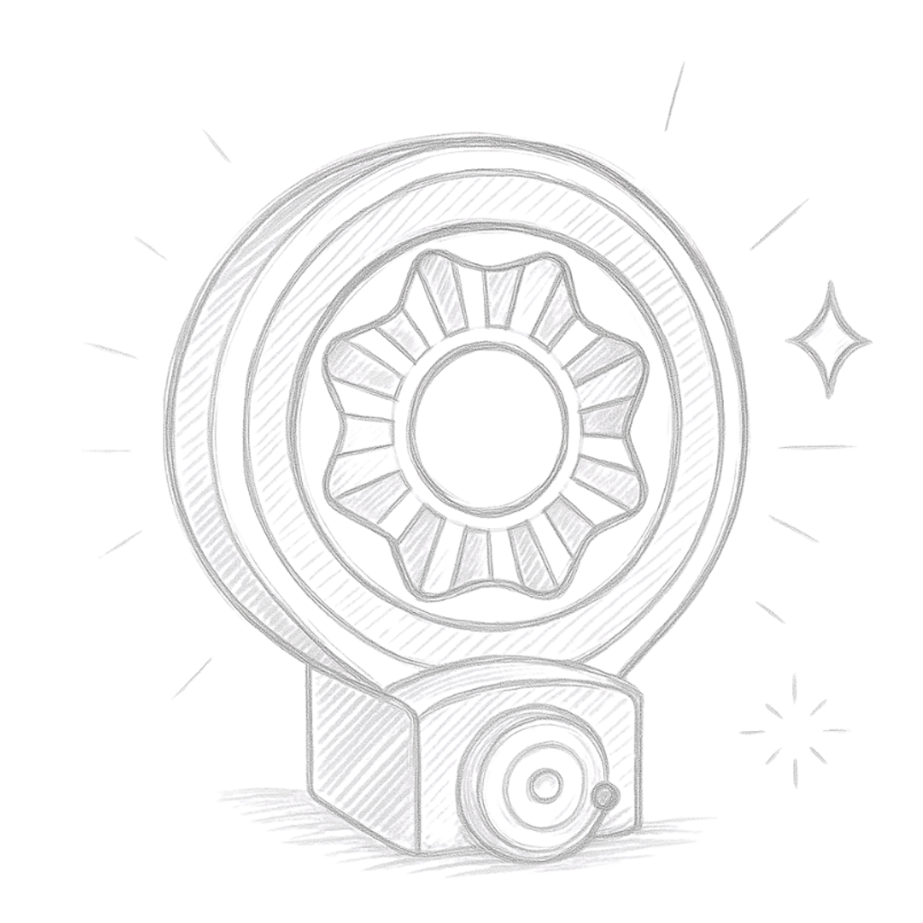 Lorsque l’enfant tourne la manivelle, les rayons du soleil s’animent et rayonnent. Ce mouvement donne l’impression que l’énergie circule, symbolisant la puissance du soleil.