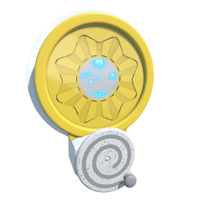 Kylii Power est un jeu mural interactif unique, conçu pour fonctionner sans câble ni batterie. En tournant la manivelle, l’enfant alimente un écran LED intégré et déclenche un mini jeu.