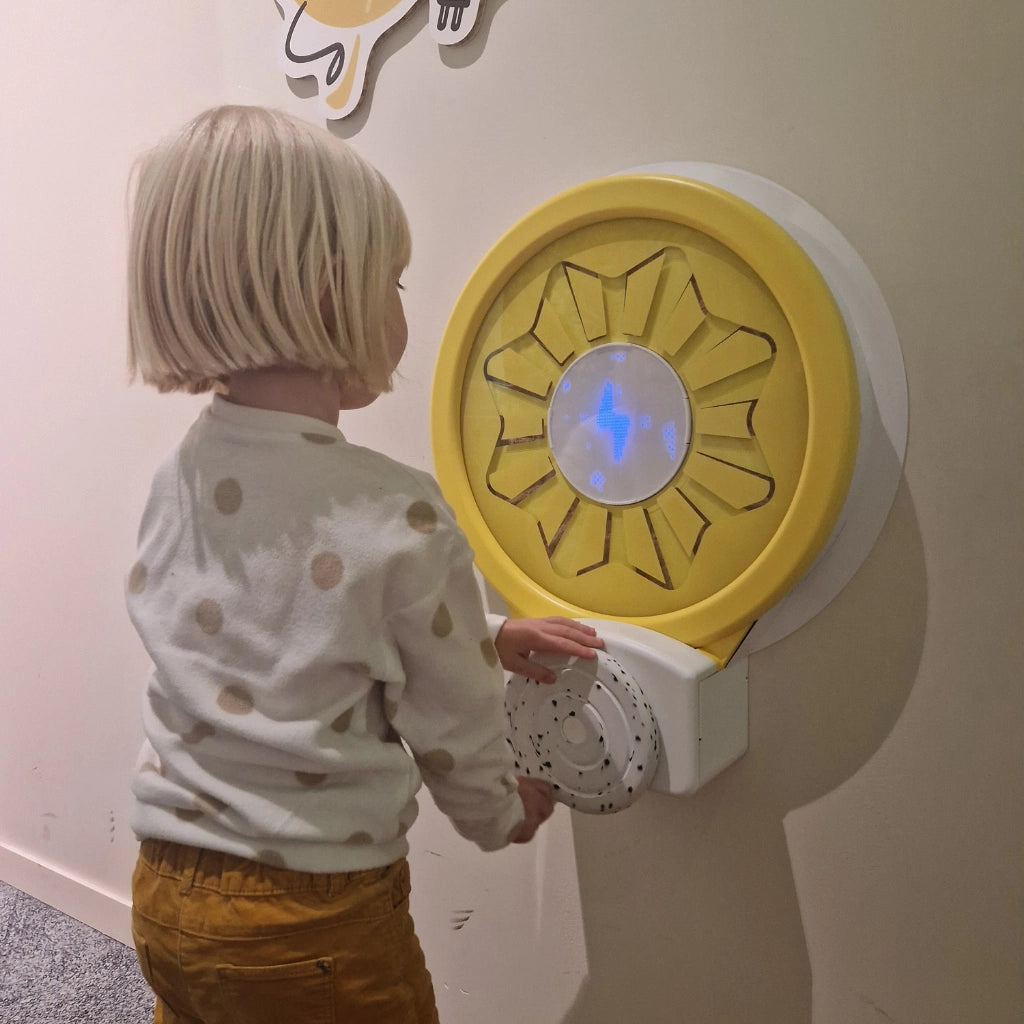 Avec le Kylii Power Sun, les enfants tournent la manivelle, activent une illusion d’optique rotative et font tourner les rayons du soleil.